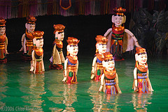 Les marionnettes sur l’eau (Mua Roi Nuoc) constituent une tradition unique au monde. Plongé dans l’eau jusqu‘à la poitrine et caché au public par un écran, le marionnettiste actionne ses personnages par un système de pieux et de perches.