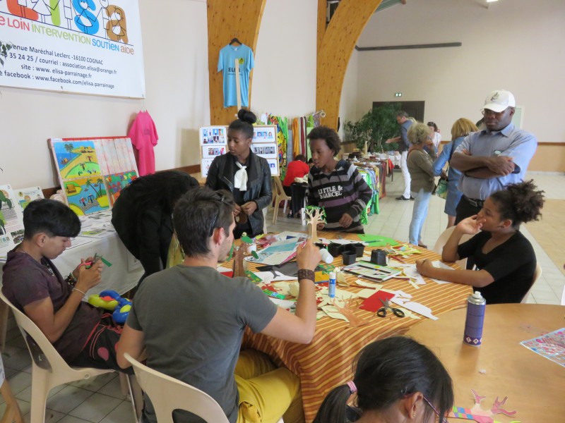 Atelier autour de l'ARBRE lors du pique-nique annuel de COFA/ELISA, le 17 septembre, sous le regard de Sermonfils AUGUSTE, prêtre haïtien de Tonnay-Charente (17) qui a initié le rapprochement ELISA / AFAM (Haïti) ...