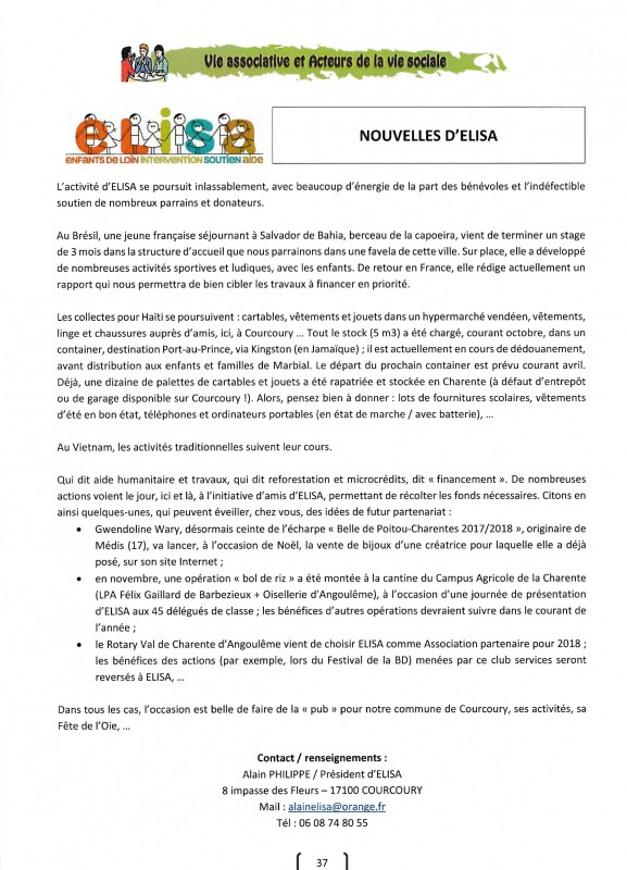 ELISA a enregistré, auprès de l'INSEE, un établissement secondaire à Courcoury (village saintongeais de 750 habitants).