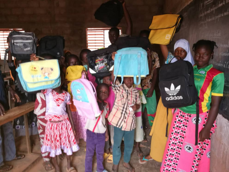- don de cartables / sacs à dos aux enfants orphelins du complexe scolaire Zoos Wandé;
